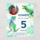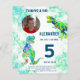 Für das Kind, das 5 Jahre alt wird und Lieben Dinosaurier. Diese farbenfrohe Roaring T Rex lädt Dino Fans zu einer lustigen 5. Geburtstagsfeier ein. Aquamarine Aquarellbilder mit Tyrannosaurus rex in lebhaften blau grün und aquamarin Persönlich dieses farbenfrohe, psychedelische Tyrannosaurus Rex Design mit einem Foto, der Geburtstagsnummer und den Details des Party und Sie sind alle Set für einen lustigen Dinosaurier-Dino-Geburtstag. Alle Dinosaurier-Arten sind willkommen. Original-Kunstwerk Illustration von Catherine Sweetman
