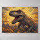 T-rex auf einem Sonnenblumenfeld Poster