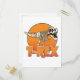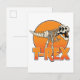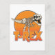 T-REX - Tyrannosaurus Rex - Fossile, lustige Cartoon-Logo des berühmten Dinosauriers vor einem lebendigen orangen Hintergrund.