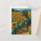 T-Rex Dino im Sonnenblumenfeld Van Gogh Postkarte