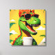 Cooler T-Rex Dinosaurier mit Sonnenbrille und einer entspannenden Tasse Kaffee in einem tropischen Ambiente