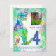 Farbenfrohe Dinosaurier Geburtstagsfeier mit Fotovorlage zum Feiern Ihres kleinen T Rex, der vier mit der vollkommenen Geburtstagsparty für den Jungen, der Dinosaurier Liebe. Dieser Roaring T-Rex lädt Dino-Fans zu einem lustigen 4. Geburtstag Party ein. Die farbenprächtige Aquarellmühle strahlt blau und grün aus und lädt zum vierten Geburtstag mit einem Foto des Geburtstagsjungen oder Mädchens, der Geburtstagsnummer und den Details zum Party ein. Sie sind alle Set für einen lustigen Dinosaurier-Geburtstag. Alle Dinosaurier-Arten sind willkommen. Einzigartiges Original von Catherine Sweetman
