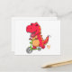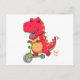 T-rex Dinosaur Riding A Green Scooter Postkarte