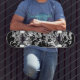 Ein cooles einmaliges Skateboarddesign! Das Skelett eines T-Rex bildet dieses prähistorische Board.