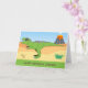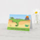 Eine Geburtstagskarte mit einem Dinosaurier-Thema. Das Design zeichnet sich durch einen heftigen T-Rex in einer trockenen Landschaft mit einem weit entfernten Vulkan aus. Der Tyrannosaurus ist grün mit lila Markierungen. Die Kartenvorderseite ist mit dem Namen des Empfängers personalisiert. Das Thema ist verbunden mit einem Dinosaurier-Fußabdruck-Muster auf der Innenseite der Karte. Es gibt auch einen Leerraum für Ihre eigene Nachricht.