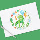Dieses T rex Dinosaurier Jungs Geburtstag Aquarell Design bietet ein glückliches niedliches zum Rex mit Party Ballons und ein Party, das von Dekoration und Blattwerk umgeben ist. Alle Illustrationen wurden mit Aquarellcreme handbemalt. Sie können das Alter an diesem Design anpassen. Sehen Sie sich die gesamte passende Auflistung an.