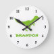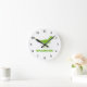 Grüne Dinosaurier-Wanduhr personalisiert mit Kindernamen. Niedliches prähistorisches T-Rex-Uhrendesign für kleine Jungen Geburtstagsparty oder Babydusche. Machen Sie einen für Sohn, Enkel, Neugeborene, Enkel, junge Mutter, Mutter zu sein, Neugeborene usw. Wild Prähistorische T-Rex Cartoon Illustration für Kinder. Tyrannosaurus rex. Kinderzimmer oder Kinderzimmer Wanduhr mit Babyname. Niedliche Geschenkidee für kleine Kinder spielen Raum. Dekoration von tierischen Cartoon mit personalisierbarem Namen.