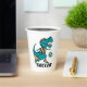 Dieses Design ist ein cooler Tasse Party zum Feiern nach einem Fußballspiel und hat einen farbenfrohen T-Rex Dinosaurier in aquamarinem Grün mit einem gelb-schwarzen Schiedsrichter gestreiftem Shirt, das einen Fußball kickt. Die Textvorlage kann personalisiert oder verlassen werden, wie es beim Wort "SOCCER" im Fettdruck der Fall ist.