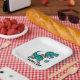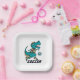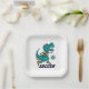Dieses coole Party-Teller zum Feiern nach einem Fußball-Spiel, dieses Design hat einen farbenfrohen T-Rex Dinosaurier in aquamarinem Grün mit einem gelb-schwarzen Schiedsrichter gestreift Shirt, das einen Fußball kickt. Die Textvorlage kann personalisiert oder verlassen werden, wie es beim Wort "SOCCER" im Fettdruck der Fall ist. Diese Teller sind in 2 Größen und in 2 verschiedenen Formen erhältlich: rund oder quadratisch.