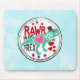 Mousepad mit einem Bild eines grünen T-Rex, der einen schwarzen Top Hut mit Herz rund trägt. Im Text steht "Rawr" bedeutet, dass ich dich in t-rex Liebe.