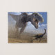 Computergrafik eines Tyrannosaurus rex Dinosauriers, der einen Ornithomimus-Dinosaurier jagt. T. rex gehörte zu den größten Fleisch fressenden Dinosauriern. Es war etwa 6 Meter groß und wog etwa 7 Tonnen. T. rex lebte in Nordamerika und Asien während der späten Kreidezeit, zwischen 85 und 65 Millionen Jahren. Der Kopf ist schwer gebaut und hat die scharfen Zähne eines Raubtiers. Man nimmt an, dass T. rex gesäubert und für Nahrung gejagt hat. Der Ornithomimus Dinosaurier war etwa 6 Meter lang und 2 Meter hoch. I