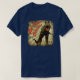 Tyrannosaurus Rex, der AK 47 Art Gewehr trägt. Sonnendurchbruchmuster im Hintergrund. Text liest "Gewehr-Toting Fleisch fressendes Tier".