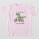 Ein T-Shirt mit einem lustigen T-Rex Cartoon: T-Rex auf einem Fahrrad. Text: T-Rex tiny arms loves dutch bikes"