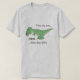 T-Shirt mit einem lustigen T-Rex Cartoon. Text: "T-Rex tiny arms hates daisy picking"