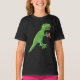 Ein T-Rex versucht Pizza zu essen, aber er ist von seinen kurzen Armen frustriert.