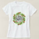 Der T - Shirt von Frauen wird mit einem festlichen heiligen Kranz-Druck gezeigt. Color White Passen Sie dieses Element an und wählen Sie eine andere Shirt-Farbe oder Stil oder kaufen Sie dieses, wie es ist. Börsenbild freepik.com