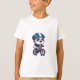 This energetic illustration captures a lovable panda bear in the middle of a fun bicycle ride. The happy character is geared up for safety, sporting a blue helmet with a white stripe, along with protective knee and elbow pads. Riding a bright red mountain bike with knobby tires, the panda displays a beaming smile and rosy cheeks, embodying a spirit of adventure and outdoor joy.