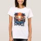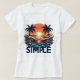 Das Design Ihres T - Shirt besticht durch eine lebhafte tropische Szene mit Palmen, Meereswellen und einem atemberaubenden Sonnenuntergang oder Sonnenaufgang. Die Farben sind eine schöne Mischung aus Blues, Orangen und Weiß, die einen bemerkenswerten Kontrast schafft. Das Wort "SIMPLE" ist mutig in die Landschaft integriert und fügt eine einzigartige Touch hinzu. Das Design ist symmetrisch und gerahmt innerhalb eines kreisförmigen Randes, sodass es optisch ansprechend und ausgewogen ist.