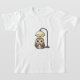This heartwarming digital artwork depicts a tiny, speckled brown owl settling in for a relaxing break. The adorable character features massive, innocent amber eyes and blushing cheeks as it sits, clutching a white ceramic mug with steam rising from it between its wings. Hovering directly above is a sleek, curved floor lamp casting a soft, yellow spotlight on the bird, creating a cozy and intimate atmosphere perfect for a night owl. The illustration uses clean lines and warm tones to capture the feeling of a late-night study session or a peaceful morning routine.