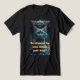 Das Design ist in einem dunklen, mystischen Stil mit Horror-Elementen gestaltet. In der Mitte des Bildes befindet sich eine ausdrucksstarke graue Katze mit gelben Augen, die zwischen Kohlen mit Flammenzungen sitzt. Der Hintergrund ist mit geschnitzten Holzelementen dekoriert, was die Atmosphäre eines alten Schlosses schafft. Der Text ist in Kontrastfarben gestaltet: Der obere Teil ist in Rot- und Grautönen gehalten, der untere Teil in Gelb, wobei die ominöse Bedeutung des Satzes hervorgehoben wird. Die Gesamtkomposition schafft ein Gefühl von Rätsel und Spannung.