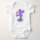 Dieses weiße Baby-Kleidungsstück ist mit einem fröhlichen lila Cartoon Nilpferd in einem gestreiften Handtuch verpackt, mit einer Bürste und mit einer winzigen Duschhaube versehen. Mit einem freundlichen Lächeln und einer badefertigen Pose ist es ein süßes und spielerisches Design, das sich perfekt für die Kleinen eignet, die Spaß und Alltagsreichtum Liebe haben - besonders für die Abenteuer der Badzeit.