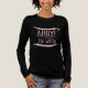 ein schwarzes, langärmeliges Shirt mit einem spielerischen und abenteuerlichen Piratendesign. Das Shirt zeigt den Satz "Ahoy! Lasst uns das Wasser in kühnen, stilisierten rosa Schriftzeichen versetzen, die von zwei durchkreuzten Kreuzen über und unter dem Text gerahmt werden. Das Design verbindet einen nautischen Flair mit einer frechen, unterhaltsamen Einstellung, die einen Abenteuergeist und Unfug nahe legt. Es ist ein leichtes und stilvolles Stück, ideal für Piratenveranstaltungen, Strandausflüge oder für alle, die eine humorvolle Seekultur genießen.