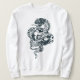 Dieses Bild ist eine stilisierte Schwarz-Weiß-Illustration einer Schlange, die um einen Schädel gewickelt ist. Das kühne Design hat scharfe Linien und einen hohen Kontrast, was ihm ein beeindruckendes und dramatisches Aussehen verleiht.