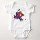 Dieses Bild zeigt ein weißes Baby-Kleidungsstück, das mit einem fröhlichen lila Hippo mit einem gelben Shirt, einer grünen Hose und einer roten Bogen-Krawatte bedruckt ist - und mit einer Hand glücklich winkt. Der Text "Ihr Text" oben legt nahe, dass es sich um ein anpassbares Design handelt. Der freundliche, lebendige Charakter macht es zu einer angenehmen und spielerischen Wahl für personalisierte Babykleidung - ideal zum Geburtstag, Duschen oder zum Alltag.