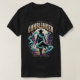 The central figure is a lone cowboy, cloaked and wearing a wide-brimmed hat, gripping a pistol. He is shrouded in dramatic turquoise and teal smoke/mist that swirls intensely around him, set against a dark, rocky desert canyon background with purple and orange highlights. The design is heavily stylized with a clean, dark, and highly detailed aesthetic. This piece is perfect for fans of supernatural Westerns, Red Dead Redemption, dark fantasy, horror movies, and gothic street apparel.