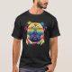 This image showcases a pug wearing stylish retro sunglasses, depicted in a vibrant, psychedelic art style. The colors are bold and bright, with a mix of yellows, blues, reds, and purples, creating a dynamic and eye-catching visual. The artistic style includes splatter effects and gradient shades, giving it a lively and modern feel.