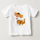 Dieses bezaubernde Bild zeigt einen Cartoon-Tigerjungen. Es hat große, runde Augen, ein weites Lächeln und markante orange und schwarze Streifen. Der Tigerpub sitzt auf seinen Hinterbeinen mit den eingesteckten Vorderpfoten und verleiht ihm ein spielerisches und kuscheliges Aussehen