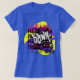 The design explodes off the shirt with a high-contrast yellow background, overlaid with fragmented layers of purple, black, and hot pink flames. The central text is rendered in different styles—from blocky grunge to graffiti script—giving it an aggressively layered, street art aesthetic. Details like the barcode and halftone dots add a distinctive cyberpunk/industrial vibe. This piece is perfect for fans of cyberpunk literature/movies, grunge music, abstract art, and anyone who favors bold, high-energy streetwear.