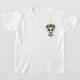 An adorable cartoon skeleton featuring a skull and upper ribcage, wearing a vibrant floral wreath on its head. The cheerful character has a wide friendly smile and large eye sockets. The flower crown consists of daisies and roses in red, blue, purple, and yellow colors with green leaves, creating a festive Day of the Dead or spring theme.