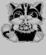 Eine niedliche Cartoon-Katze mit großen, glänzenden Augen schmunzelt auf einer Pizza, die mit Fisch und anderen Zöpfen geschmückt ist. Die spielerische Verwendung von Farben und übertriebenen Features verleiht eine skurrile Touch.