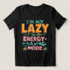 Dieses humorvolle und stilvolle T - Shirt-Design enthält den spielerischen Slogan "I’m Not Lazy, I’m On Energy Rett Mode" in fett-retro-inspiriert Typografie. Die lebhafte Farbpalette umfasst aquamarin, orange und rosa, mit moderner Touch und 3D-Schatteneffekt. Ideal für lässige Kleidung und eine tolle Konversations-Starter für diejenigen, die verrückte und witzige Mode Liebe. Ideal zum Gaben oder Hinzufügen zu Ihrer persönlichen Sammlung.