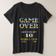 The design features massive, pixelated "GAME OVER" typography with a classic blue-to-gold metallic gradient, mimicking the look of 90s arcade cabinets. Centered below is the iconic prompt "CONTINUE?" followed by a bold white "10" second countdown timer.