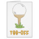 Ein Golfball sitzt, gewartet, um mit einem Putter getroffen zu werden. "T-Shirt-Aus" in gelbem Text unten.