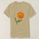 Blume, orangefarbene Kalendula blühen auf pastellfarbener Krawatte. Wassertropfen sind auf den Blütenblättern zu sehen. Grüner Stamm und Blätter.
