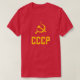 Treten Sie zurück in die 1980er Jahre, als die UdSSR am anderen Ende des Eisernen Vorhangs war, mit Ihrem eigenen CCCP (UdSSR in Russisch) T - Shirt, komplett mit dem UdSSR-Hammer und Sichel. Das rote Shirt mit gelbem Text erinnert an die alte Flagge der UdSSR.