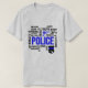 Dieser T - Shirt hat das Wort "Polizei" in blau, zusammen mit mehreren Worten, die beschreiben, was ein Polizeibeamter ist und tut. Das wäre großartig für ein polizeiliches Party oder ein Party für jemanden, der die Polizeiakademie oder irgendeine Polizeiakademie abschließt.