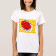 Whimsisches Design gezeichnet in einem Retro-Stil mit einem rote Rose-Souvenir aus einem spanischen Urlaub auf einem gestreiften gelben Hintergrund. Ein individualisierbares Design in Schwarz, Weiß, Rot und Gelb für Sie, um mit Ihrem eigenen Text, Bildern und Ideen zu personalisieren. Ein originelles digitales Kunstbild.