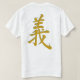Vorderer Entwurf durch Vanessa Rawlings. Die Rückseite ist der Kanji Gi, der erste der sieben Vorzüge von budo und kann als gute Tat, Aufgabe oder Redlichkeit übersetzt werden.