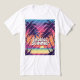 Ein T - Shirt Endless Summer Retro-Stil Strand-Szene mit Palmen, ein Sonnenuntergang Gradient Himmel, und Text "Endless Summer", Vaporwellfarben, Vintage Surf Poster ästhetisch.
