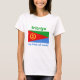 Auf der Vorderseite dieses Shirts wird die eritreische Fahne mit ihrem Goldkranz in einem roten Dreieck mit grünen und blauen Dreiecken betitelt. Die Rückseite zeigt eine detaillierte Karte von Eritrea.