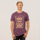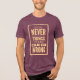 T - Shirt mit einer kühnen, humorvollen Botschaft in einem Vintagen Schriftart. Der Text lautet: "Es geht dir nie aus Dingen aus, die schief gehen können", gerahmt in einem rechteckigen Rahmen. Das Design verwendet eine kontrastfarbene hellbeige Farbe für den Text, wodurch er sich vor dem dunklen Hintergrund abhebt. Die Phrase erfasst eine leichte, leicht sarkastische Einstellung zu den Herausforderungen des Lebens, die bei jedem ankommt, der unerwartete Rückschläge erlebt hat. Es ist eine witzige und verlässliche Aussage, die oft benutzt wird, um Widerstandskraft oder Spaß in schwierigen Situationen auszudrücken.