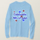 "Feiert am 4. Juli!" Text in rot, weiß und blau mit blauen und roten Sternen im Hintergrund.