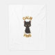 The design features a sleek **black cat face with glowing golden eyes**, surrounded by a subtle gold halo, and paired with the words **“CALM – FINE”** in smooth curved typography.