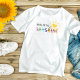 Hier ist ein lustiger und farbenfroher T - Shirt, der sagt: "Bringen Sie den Sonnenschein an" in farbenprächtigem Schriftart, gepaart mit einer herzförmigen Sonne.