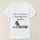 Schwarz-Weiß-Vogel (Schwarzes Phoebe) auf einem rustikalen Holzzaun sitzend. Blaue "Himmel" Hintergrund. Im Text steht: "Ich bin in Bezug auf diese Frage auf dem Zaun"