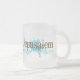 Stilvolles blaues und braunes Logo sagt Jerusalem in der Art.  Nettes Geschenk für Reisende.